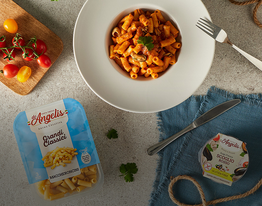 Dal 1983, De Angelis Food è cresciuta da un piccolo laboratorio artigianale a un gruppo leader nel mondo della pasta fresca, unendo tradizione, innovazione e passione. Ogni fase della produzione riflette cura, qualità certificata e un’attenzione costante alle esigenze dei consumatori moderni.